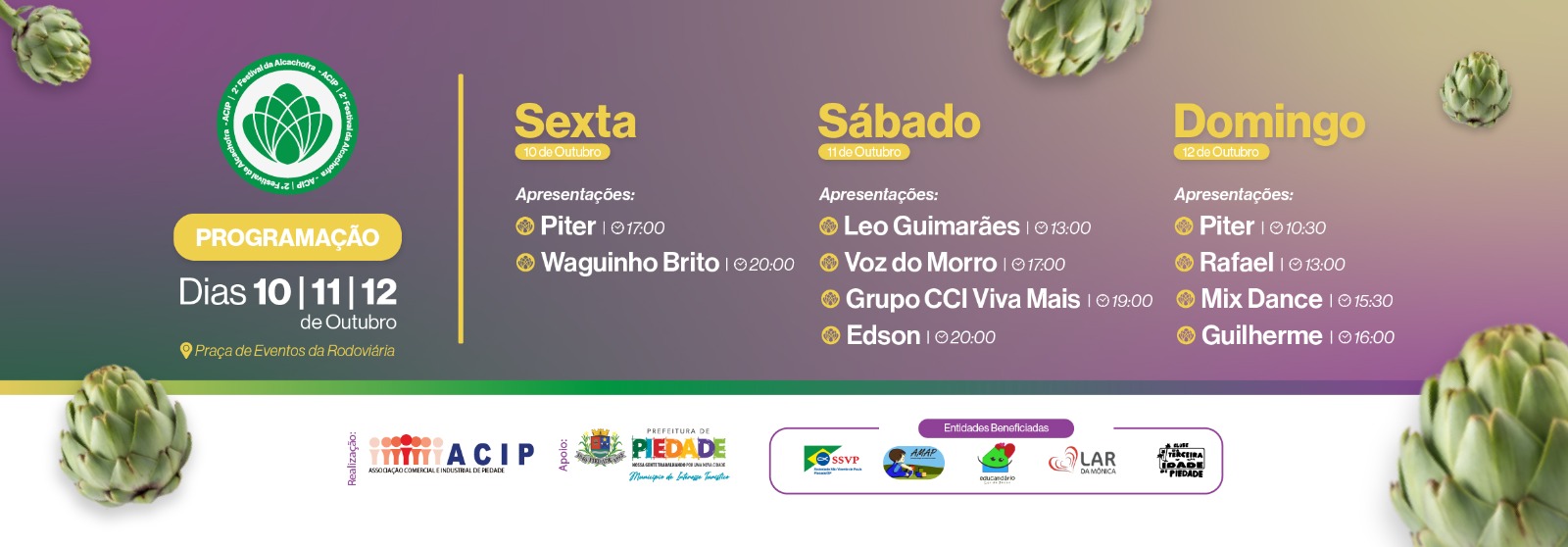 Realizado pela ACIP Piedade, com apoio da Prefeitura, o Festival da Alcachofra 2025 promete ser um marco na programação cultural da cidade.